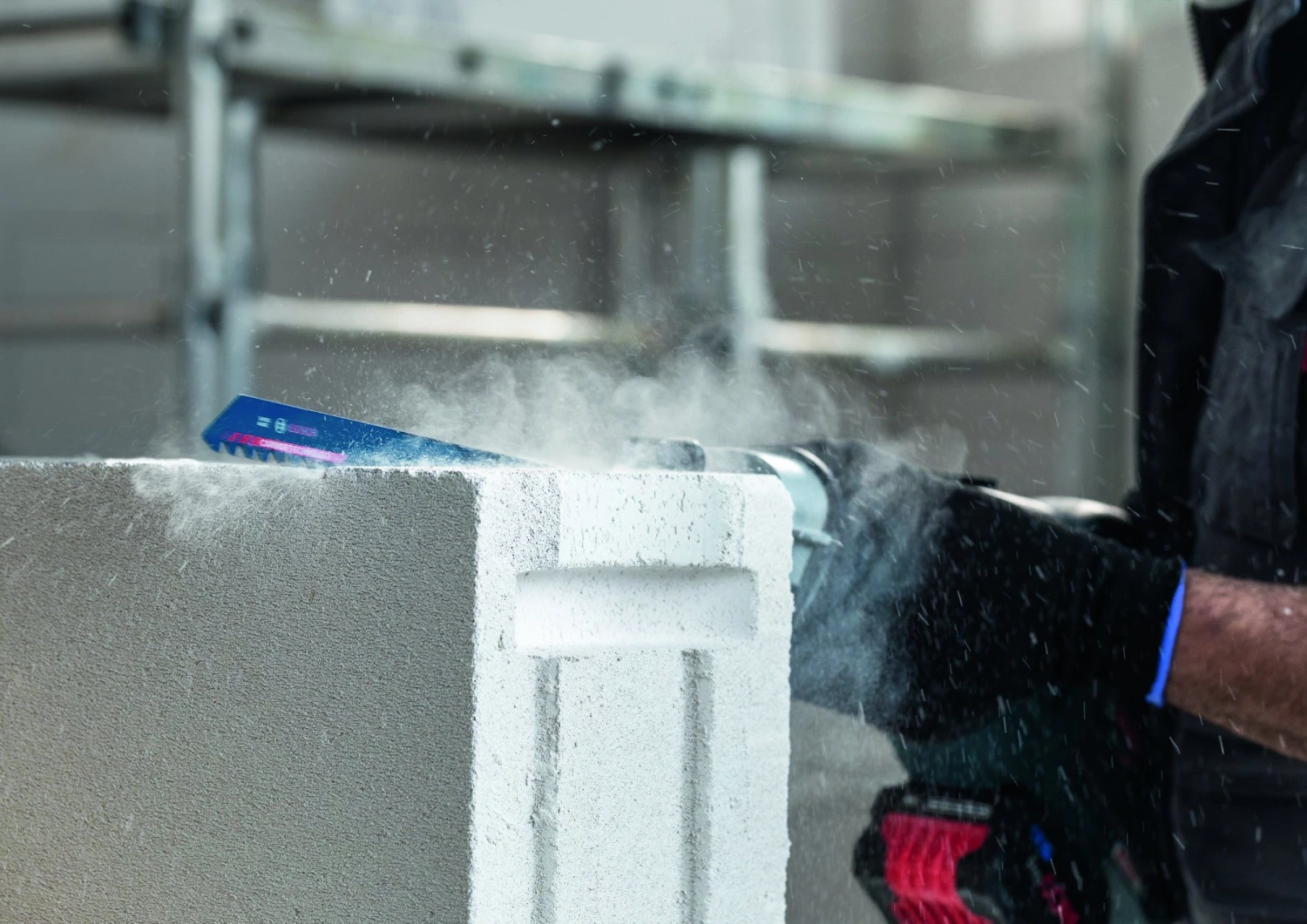 Vóór de hardmetalen reciprozaagbladen was gemakkelijk zagen van poreuze betonblokken met een reciprozaag ondenkbaar. Maar nu is er het Bosch Expert ‘Aerated Concrete’ reciprozaagblad.