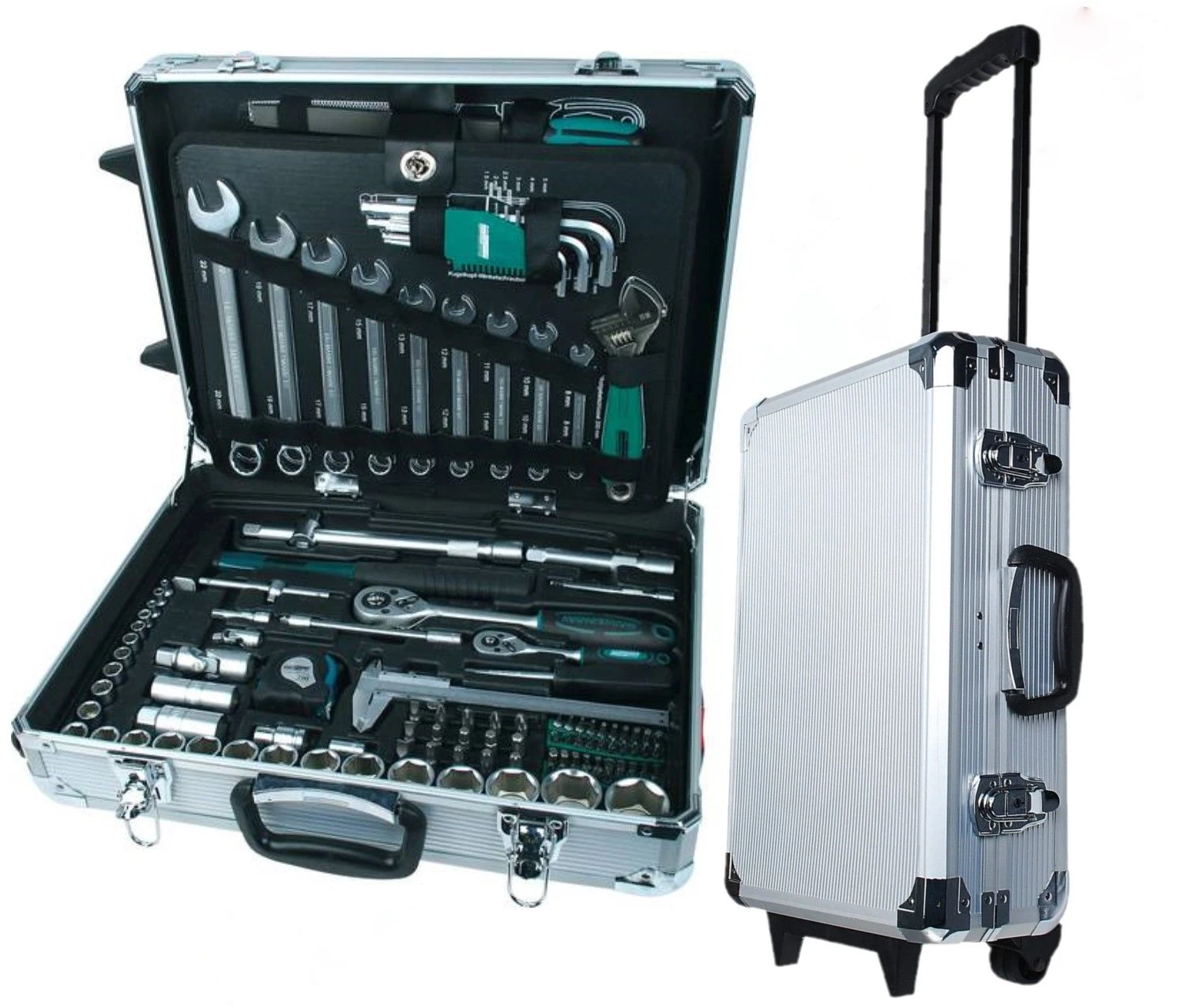 Aluminium gereedschaptrolley met 159-delige Green Line kwaliteitsgereedschapset voor professional en klusser.