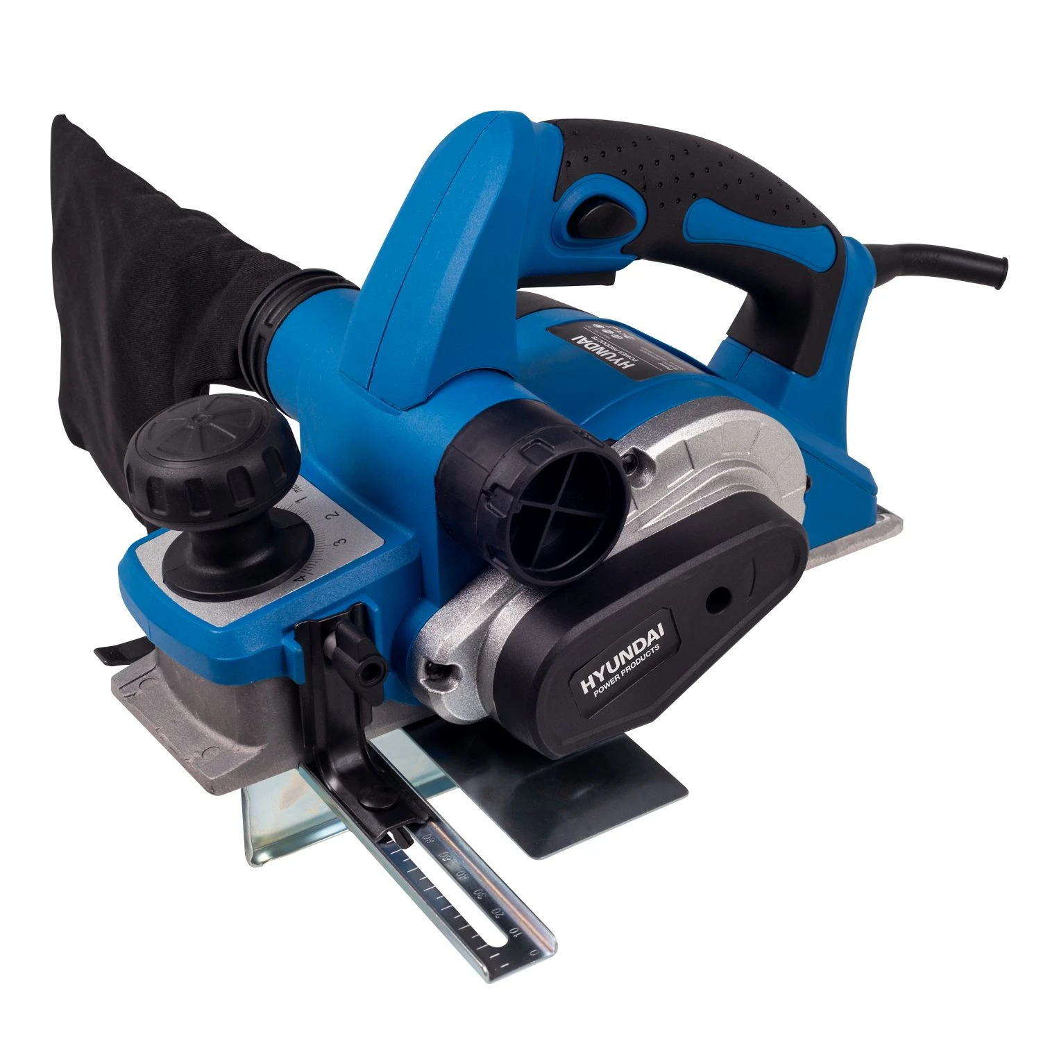 Deze uiterst krachtige Hyundai schaafmachine heeft grote mesassen voor toepassingen tot 4 mm spaandiepte. De bijgeleverdezijgeleider kan je evenwijdig met het houten werkstuk schaven of sponningen maken. De spaanuitworp kan aan 2 kanten wordeningesteld, terwijl de solide aluminium voetplaat, met drie V-vormige groeven, voor het eenvoudig afschuinen van randen en vlakkeresultaten oplevert. De ergonomische handgreep en de softgrip zorgen voor een veilige en comfortabele, stevige grip.De schaafmachine wordt geleverd met een parallelaanslag voor nauwkeurige schaafresultaten, een sponningdiepteaanslag voor hetmaken van uitsparingen en een TCT-schaafmes (omkeerbaar mes).