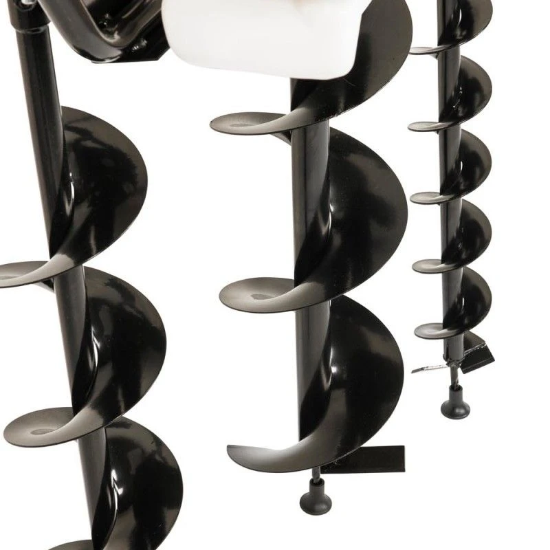 Stopknop en gashandel zijn gemonteerd aan de rechter handgreep. Er zijn boren leverbaar van 60mm tot 300mm. Standaard boorlengte 80cm. Wij adviseren voor deze machine een max. diameter van 200mm en in zanderige gronden 250mm. Mochten de boren qua lengte niet voldoende zijn dan hebben wij ook twee verlengstukken leverbaar. Eén verlengstuk van 400mm (deze is volledig massief!) en één van 600mm.