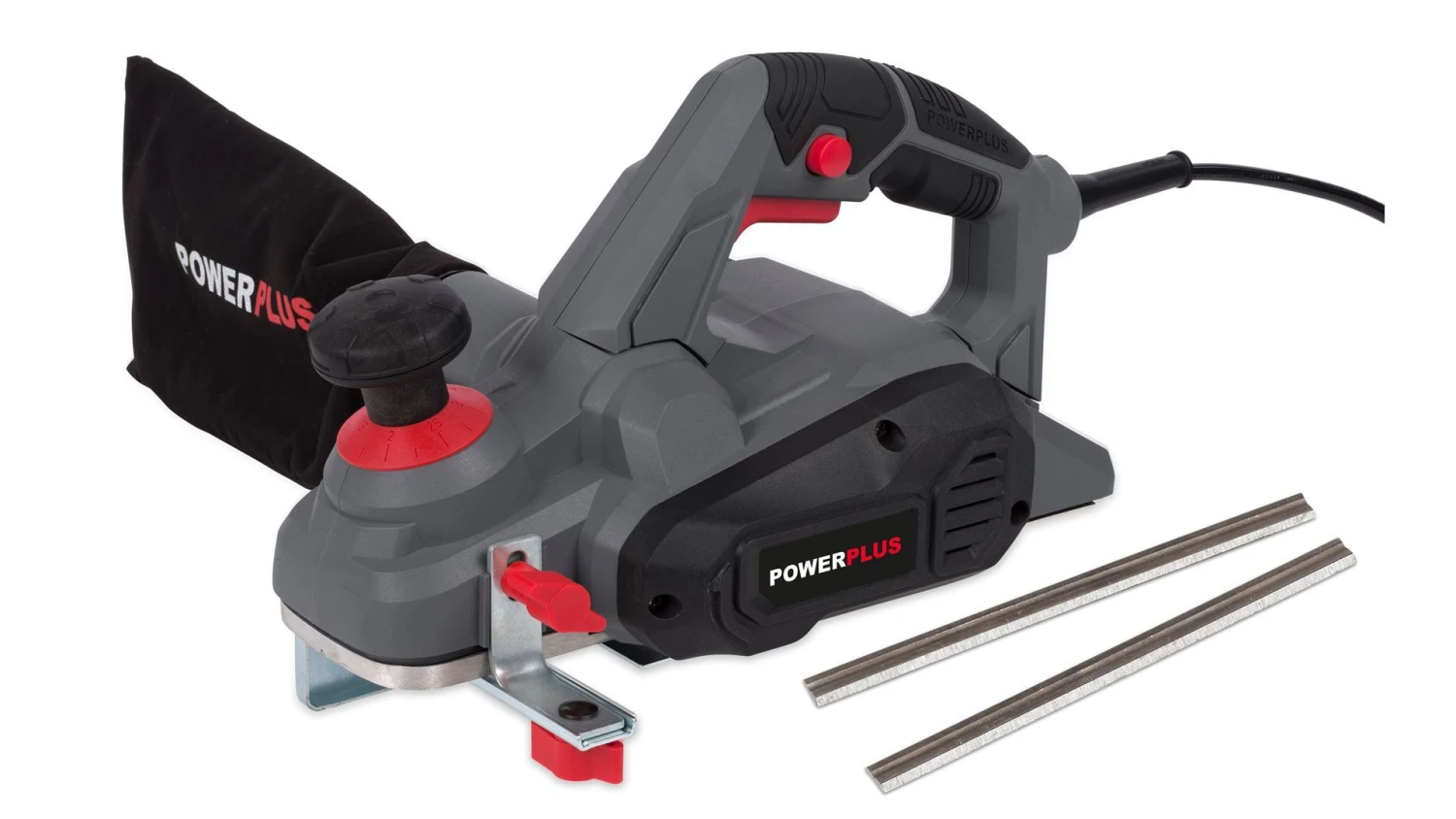 Stof vangt de POWE80030 op in de bijgeleverde stofzak. Of je sluit de schaafmachine rechtstreeks aan op de stofzuiger, dat gaat ook.