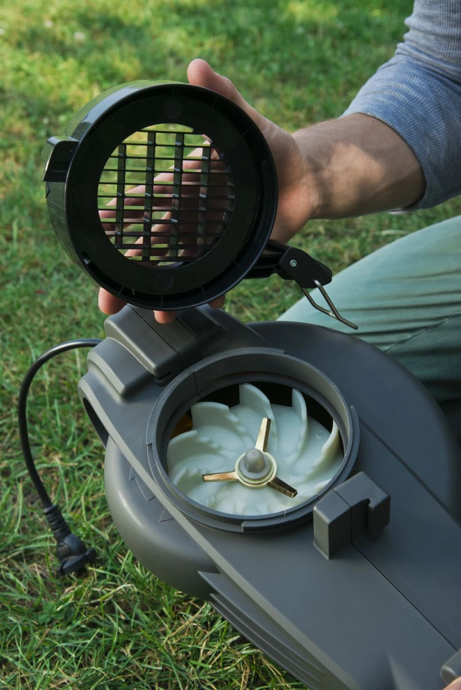 Bladblazer/-zuiger, aangedreven door een elektrische motor van 2600 W met maximaal luchtvolume van 7 m³/min. Bladopvangzak van 45 liter meegeleverd.