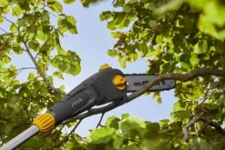 Met de PS 700e snoeizaag op steel in de hand kunt u tot 4 meter hoog snoeien, ideaal voor moeilijk bereikbare takken. Aangedreven door een 450 W motor en een aanbevolen 48V 4Ah batterij. De PS 700e geeft u tot 30 minuten werktijd in een laadbeurt. het 25 cm lang zwaard en een performante ketting garanderen steeds een uitstekend snoeiresultaat.